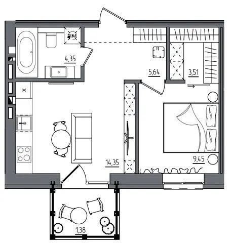• Загальна площа 38.68 м2