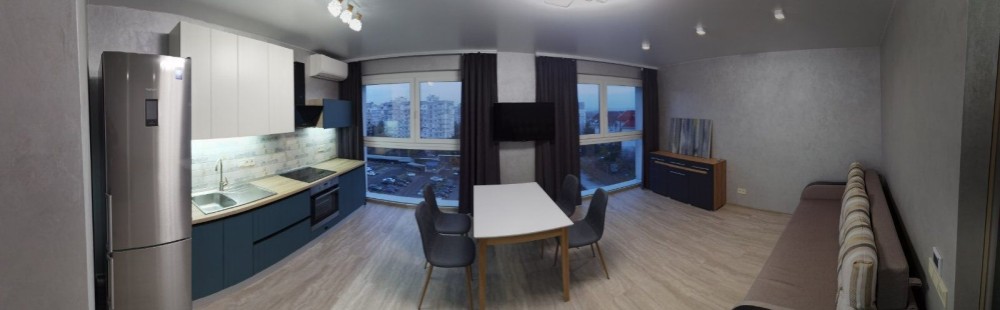 Квартира спланирована в кухню-гостинную.