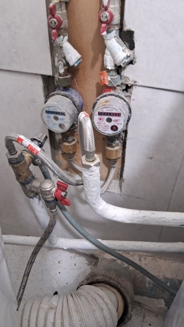 Счётчики горячей и холодной воды.