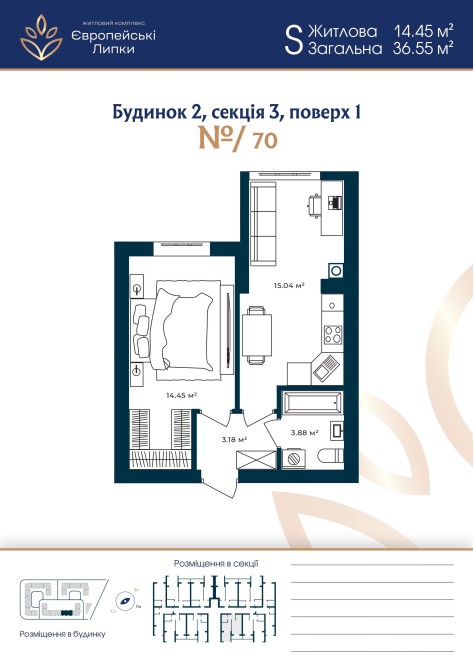 1-к 36 м², ЖК Європейські Липки | держпрограми, розтермінування.