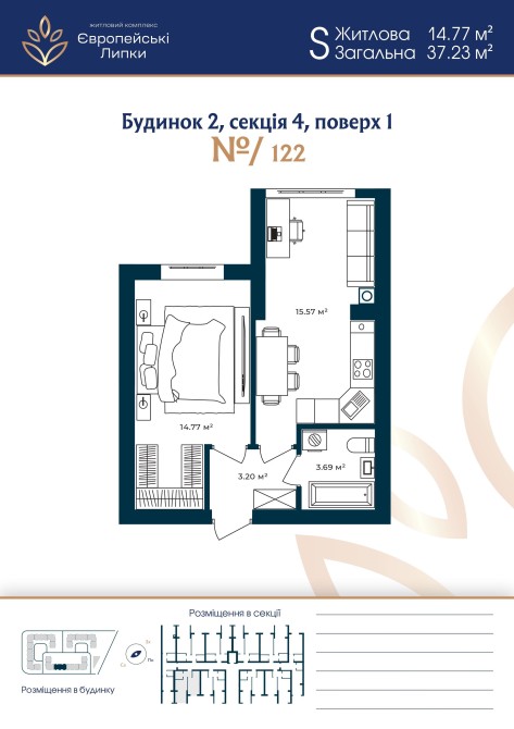 1-к 37м², ЖК Європейські Липки | держпрограми/єОселя.
