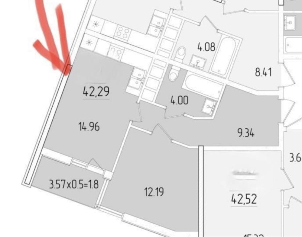 Общая площадь: 42 м2.