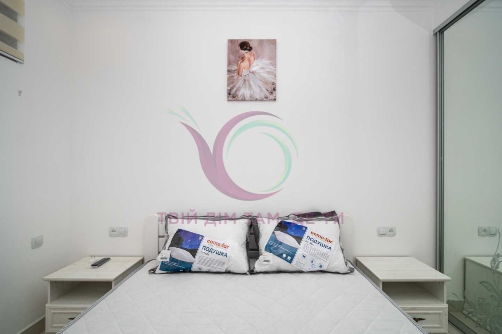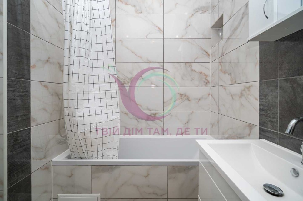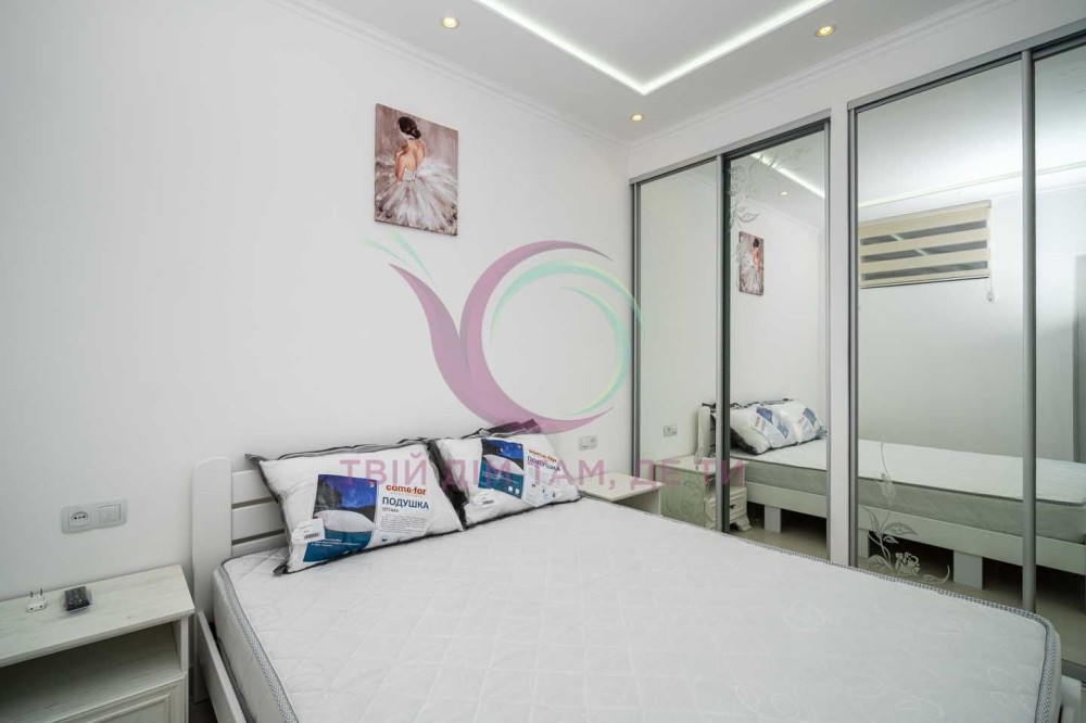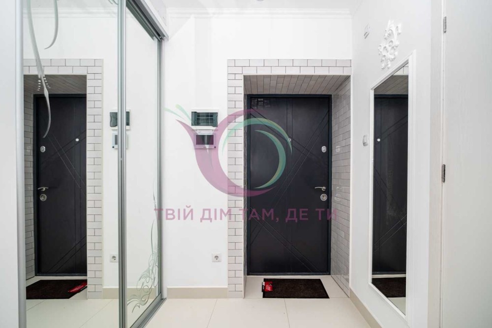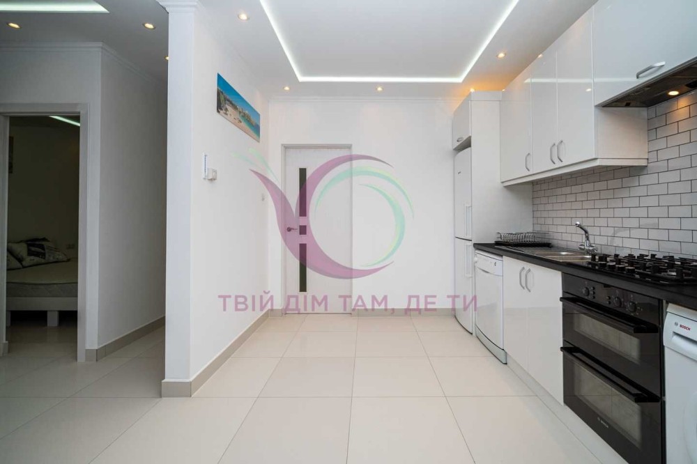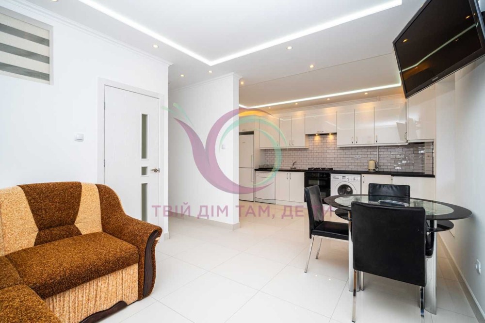 Стильна квартира з якісним ремонтом та сучасним дизайном інтер’єру має окрему спальну кімнату з міжкімнатними дверима та місткою шафою для речей. Кухня-студія площею 10 м2 обладнана шафами для посуду, холодильником, плитою, духовкою, витяжкою, має простору зону вітальні. Санвузол сумісний з ванною кімнатою має якісну сантехніку. Квартира укомплектована надійною побутовою технікою, підігрівом підлоги, індивідуальним опаленням, якісними меблями та усім необхідним для комфортного тривалого проживання.