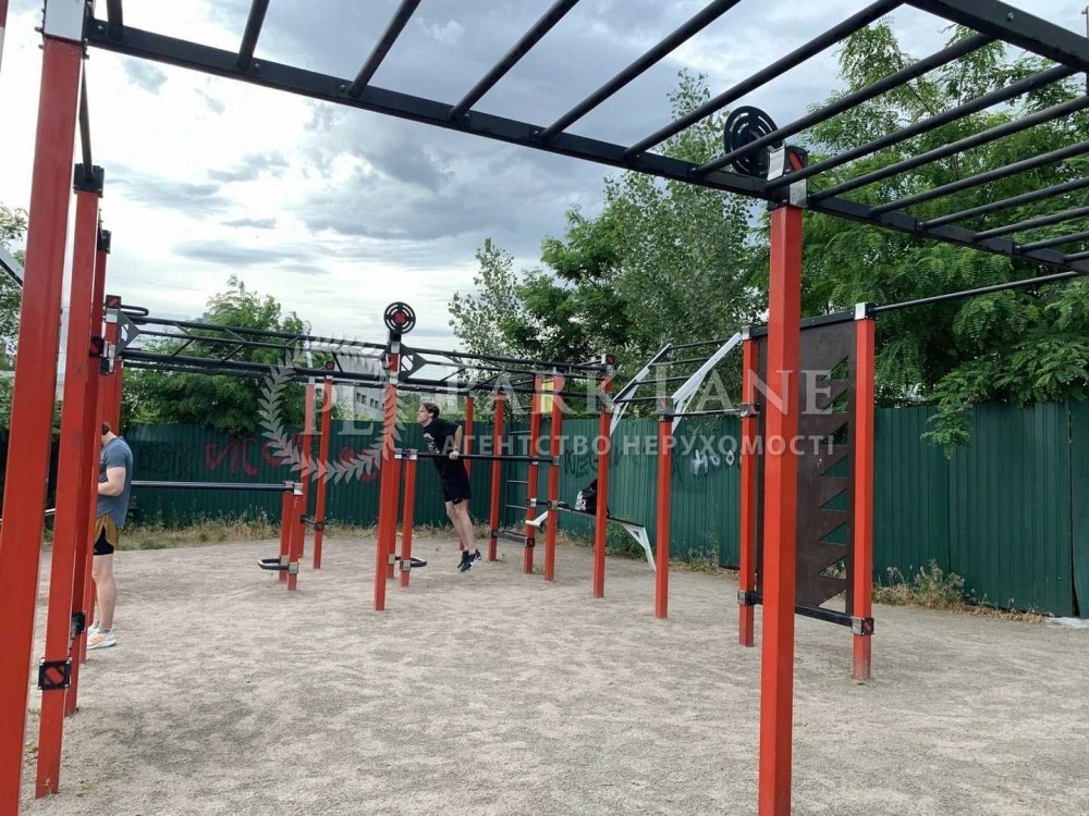 В будинку є паркінг, поруч дитячі майданчики, школа, спортивні майданчики.