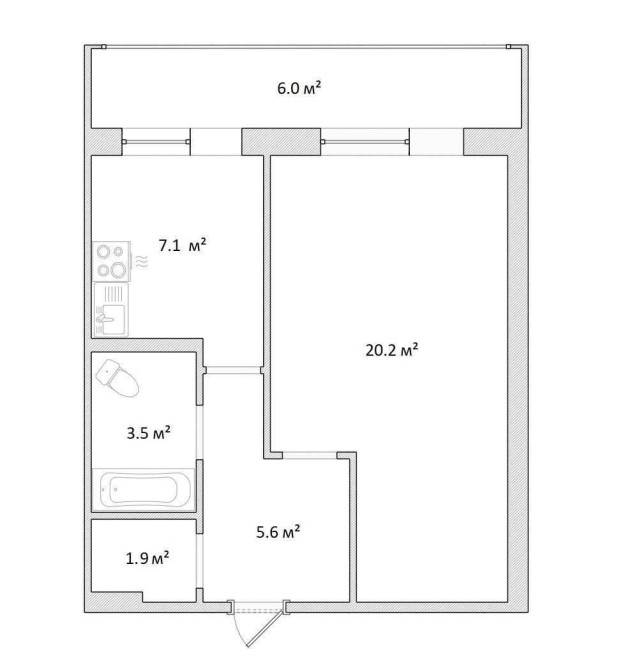 • Общая площадь 42 м2
