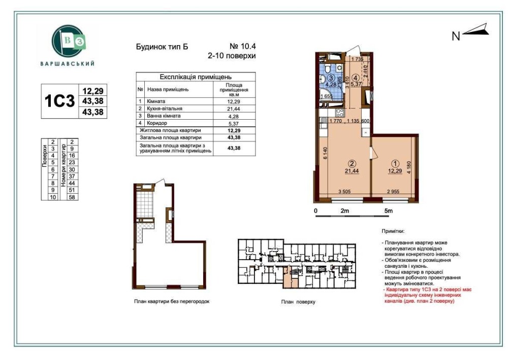 1 кім квартира ЖК Варшавський 3 Варшавский Змієнка Ключі Буд 10.4