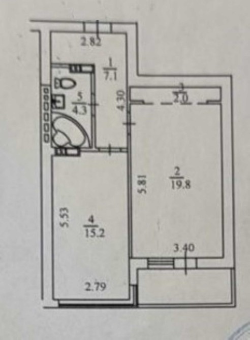 Квартира 50 м² (житлова – 19,8 м² / кухня – 15,2 м²)\