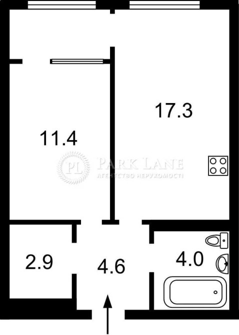1 кімн. кв., 11-й поверх, площа: 44/11,4/17,3 кв.м.