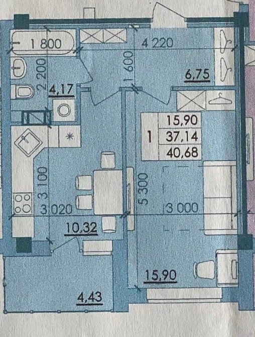 • Загальна площа 41 м2