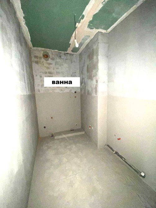 - Ванна кімната: труби розведені, стіни підготовлені під плитку, на підлозі підігрів, на стелі гіпсокартон.