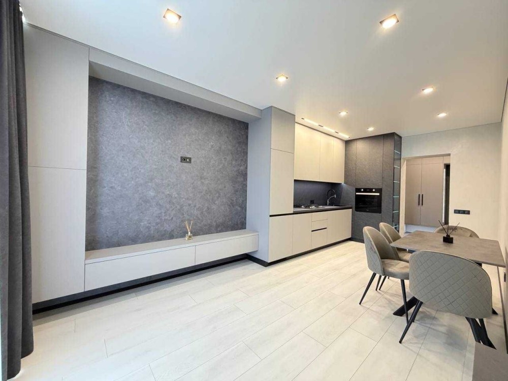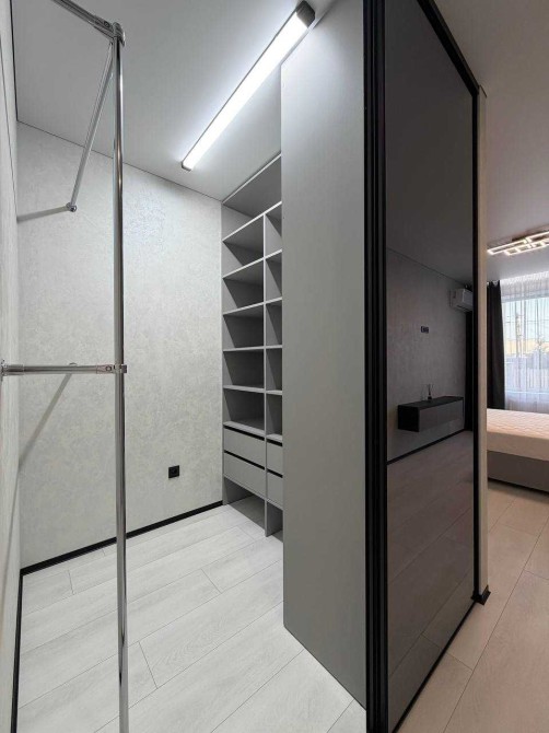 Простора кухня. Вбудована побутова техніка. Кухня з холодильником, духовою шафою, газовою поверхнею, посудомийною машиною. Окрема зона ТВ на кухні. Вклика шафа в коридорі. Кімната з двоспальним ліжком, шафою-гардеробом, встановлений кондиціонер. Вся сантехніка, пральна машина, підігрів підлоги в санвузлі та коридорі.