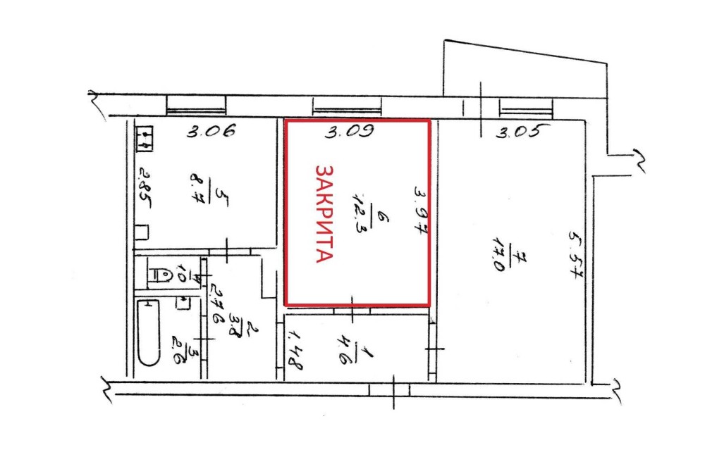 • Площа 38.4 м.кв та зручне планування: простора кімната 17 м² + кухня 8.7 м² + прихожа + коридор + окремі ванна та туалет у межах 2-кімнатної квартири (загальна площа 50.7 м.кв, кімната 12.3 м.кв. зачинена)