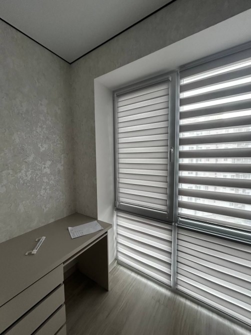 Панорамна лоджія з комп'ютерним столиком та шафою.