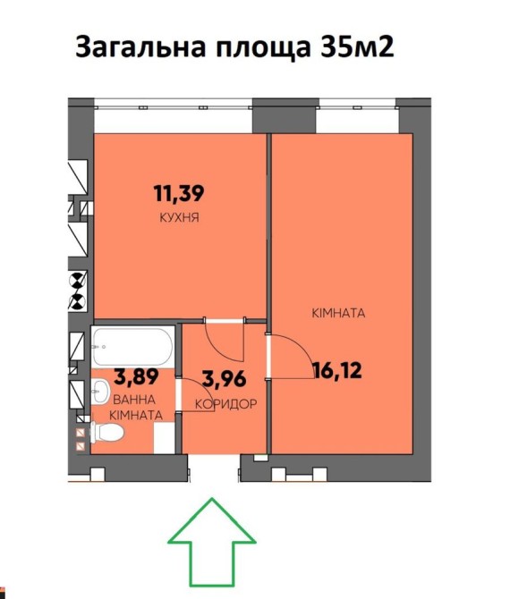 • Загальна площа 35 м2