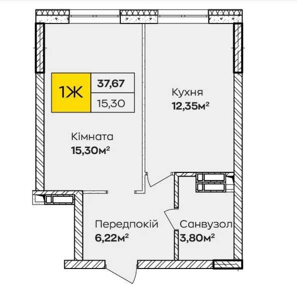 Площа — 37,67 м²