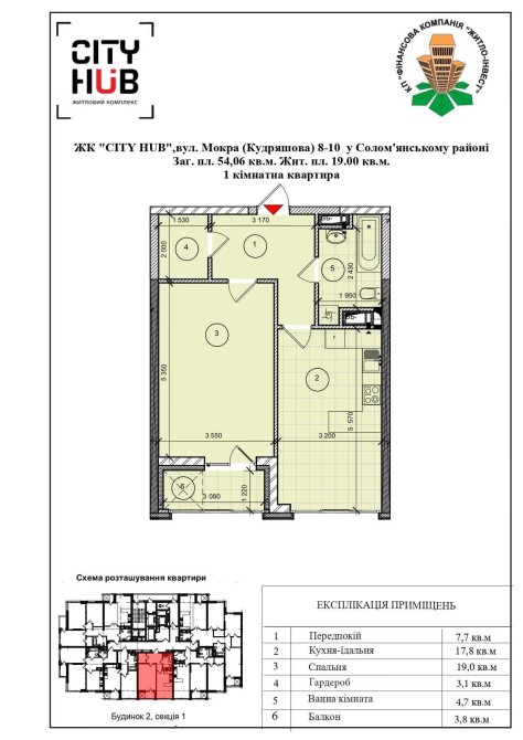 • Загальна площа 54.06 м2