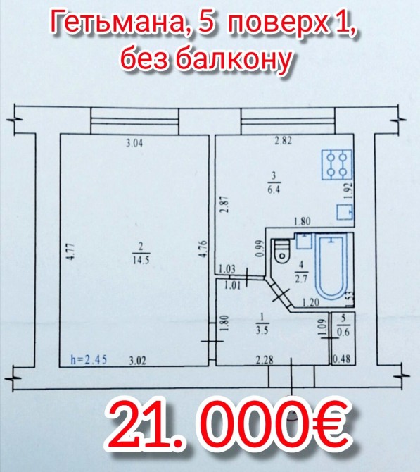 1 кімнатна квартира продаж 11 школа Гетьмана - фото 3
