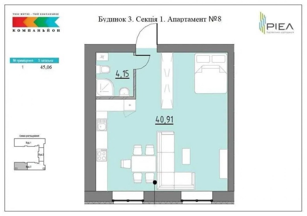 • Загальна площа 45 м2