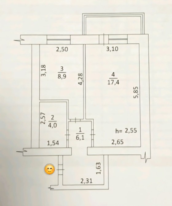 Велика кімната 17,4 м2.