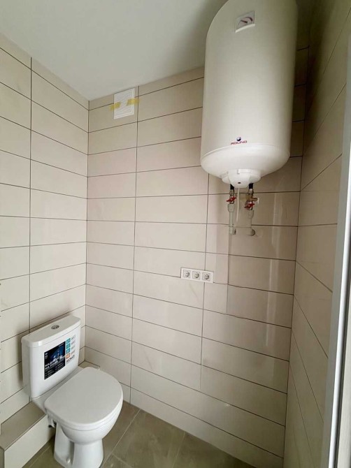 Санвузол обладнаний сантехнікою, встановлений бойлер і прилади обліку.