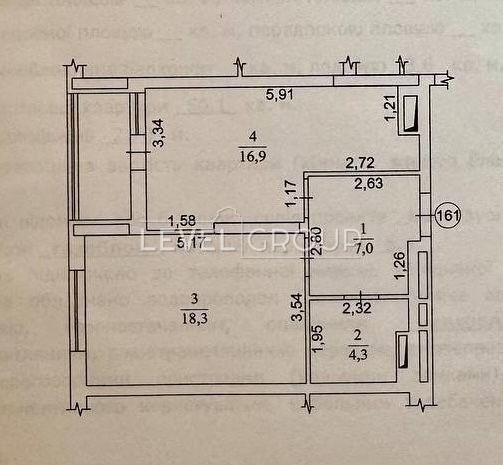 Планування: Простора кімната (18,3 м²) та велика кухня-студія (16,9 м²).