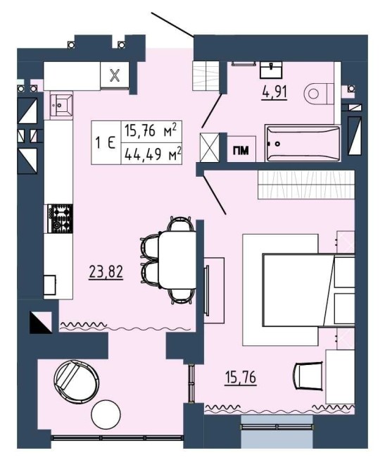 • Загальна площа 44.49 м2