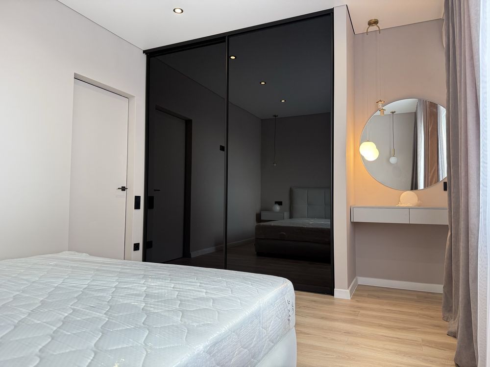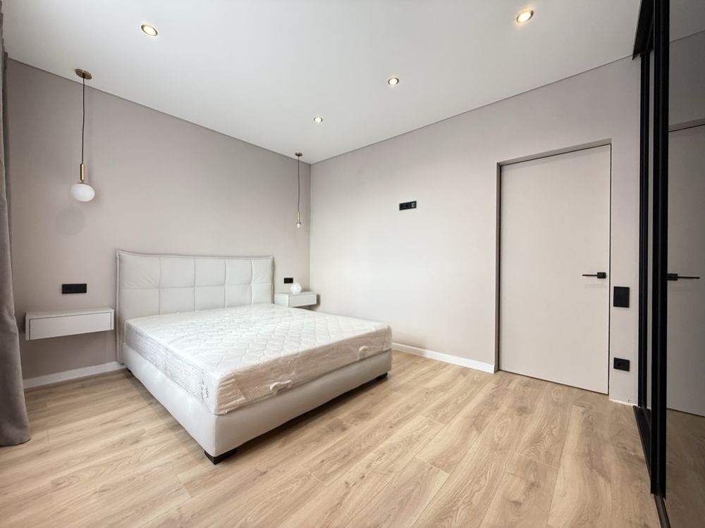 Окрема велика гардеробна кімната. Спальня з двоспальним ліжком, шафою. Кондиціонер, пральна машина. Автономне газове опалення. Підігрів підлоги.