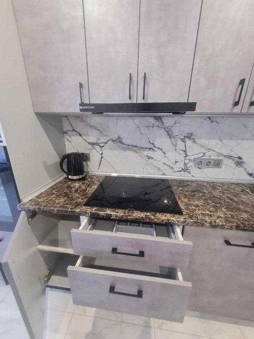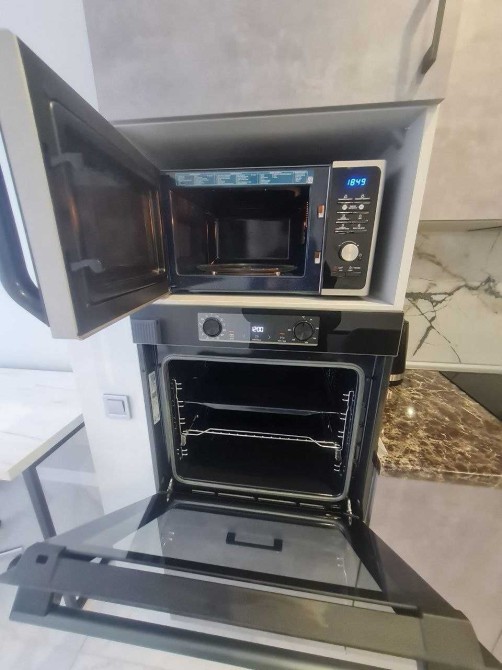 - простора кухня обладнана варильною поверхнею,духовою шафою, мікрохвильовкою, посудомийною машиною,електрочайник, холодильном (вся техніка нова,якісна брендів samsung та gorenje) стіл та 4 кресла jusk.