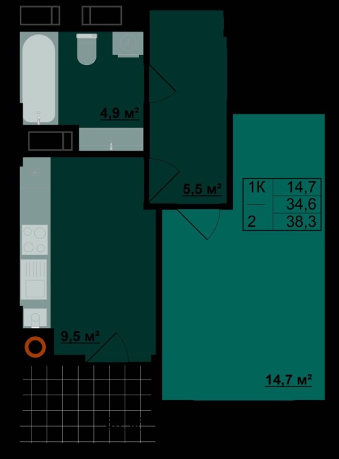 • Загальна площа 38.3 м2