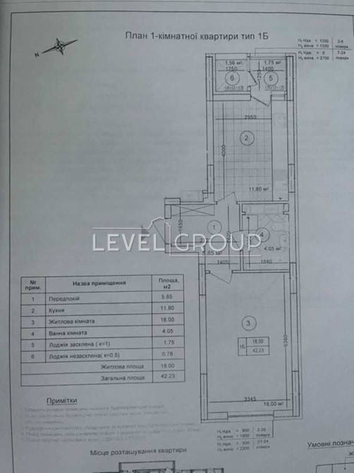 • Площа: 42,23 м²