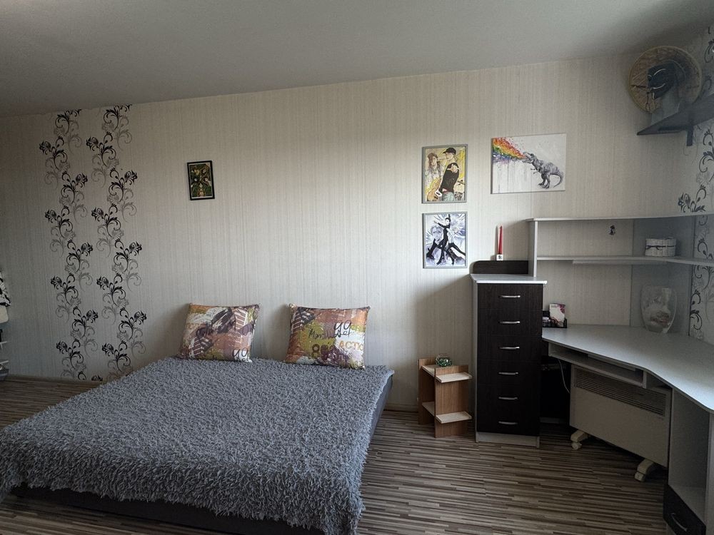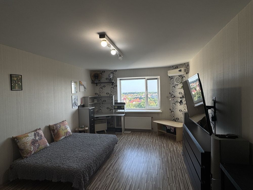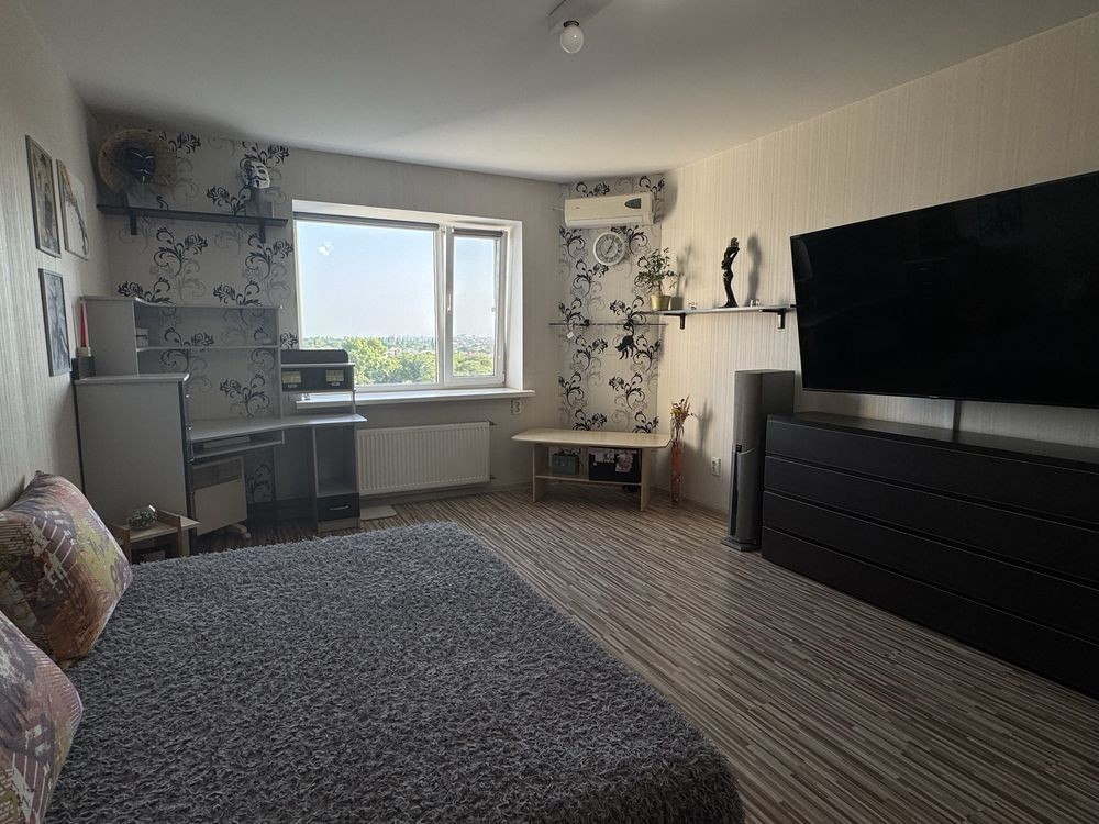 Продаж 1-к квартири вул. Кам'янська 128. м. Вирлиця 5 хв. Ремонт у світлих тонах, вікна підлоги, стелі 3 метри. Продаж з меблями та побутовою технікою. Гарний вид на Бажана проспект і озеро. Лічильник на тепло. Закрита територія. Поруч парк Партизанської Слави. 044 200 10 80