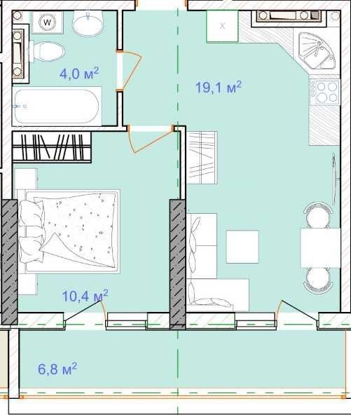• Загальна площа 39 м2