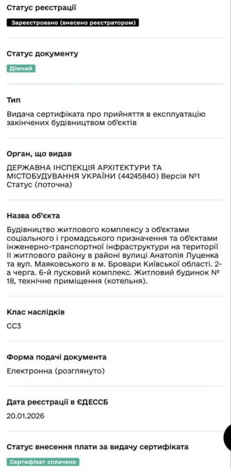 Продается 1-комнатная квартира 35 м2 от владельца, ЖК "Скандия», Бровары.