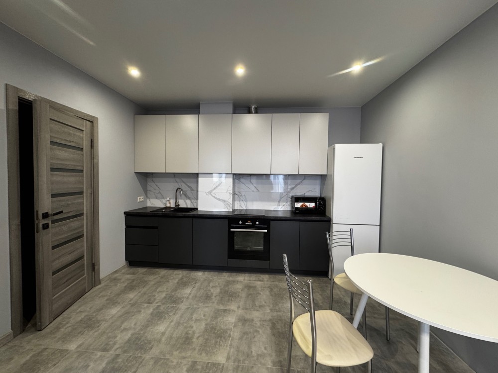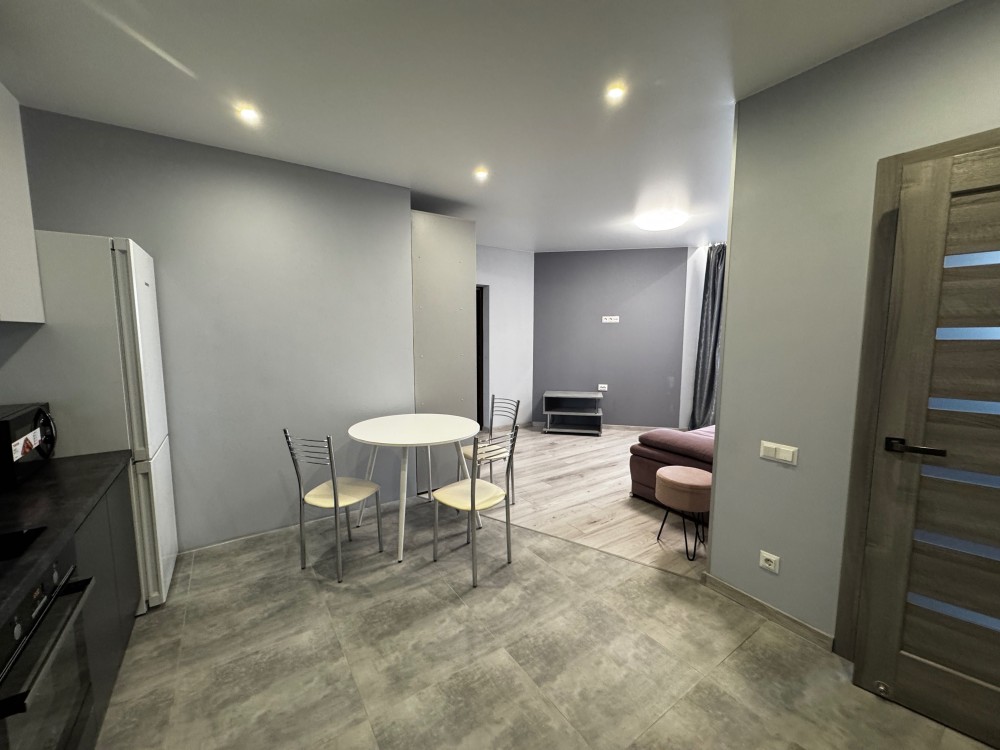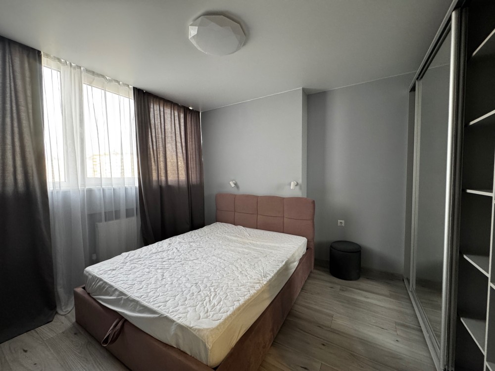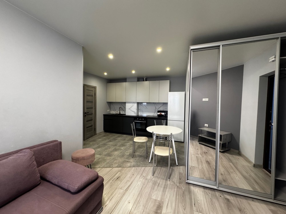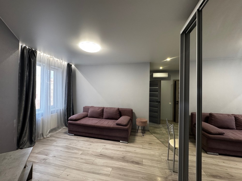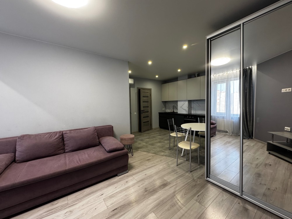 Пропонуємо в оренду гарну однокімнатну мебльовану квартиру площею 40 кв. м. на 10-му поверсі, яка складається з: вітальні, повністю обладнаної кухні, спальні та ванної кімнати.