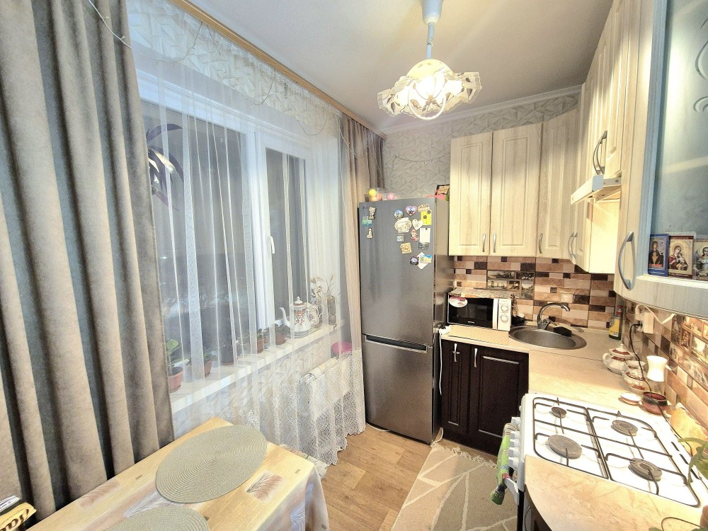 Пропонується до продажу однокімнатна квартира, розташована в районі Чулочної фабрики за адресою Проспект Миру. Квартира знаходиться на 4 поверсі дев'ятиповерхового панельного будинку, загальна площа становить 31,5 кв.м. Житлова кімната площею 19 кв.м розділена на дві функціональні зони з виходом на балкон.