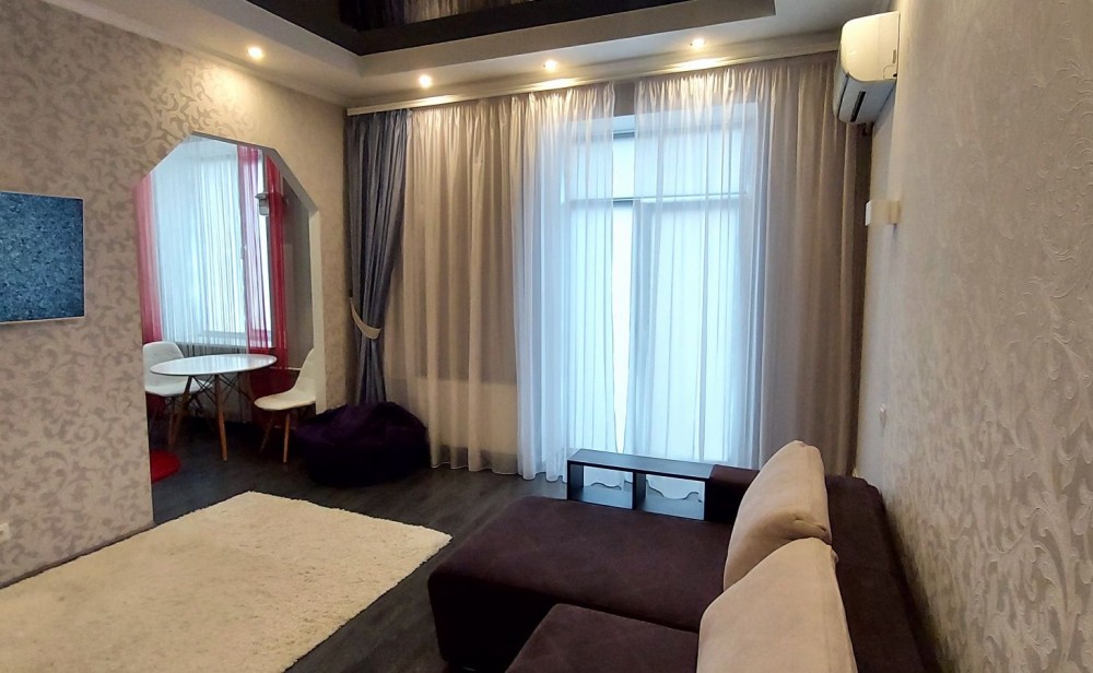 Код: 159. ПОМЕСЯЧНО АРЕНДА АКТУАЛЬНА В ПЕРИОД С 01.09 ДО 30.05 (в летний сезон сдается посуточно от 2-х суток, раннее бронирование от 5-и суток и более). Квартира с балконом и видом на город в центре Одессы, ул. Ланжероновская, 21, 2/2 эт. дома, общая площадь 50 кв. м. Необычный эксклюзивный ремонт, кухня-студия и спальня, (зона гостиной с раскладным диваном, спальня с кроватью) всего спальных мест – 4 (2+2), раздельный санузел с душем. Квартира оснащена всей необходимой мебелью и бытовой техникой: кондиционер, ТВ (кабельное), WI-FI интернет. Рядом Оперный театр, улица Дерибасовская, Приморский бульвар, «Морвокзал». Аренда от 1-го месяца и более. Стоимость может варьироваться в зависимости от срока аренды. Перед просмотром уточните наличие и детали по VIBER, WHATSAPP или TELEGRAM, указав «КОД» из объявления. КОМИССИЯ ЗА УСЛУГИ РИЭЛТОРА - 50% от месячной аренды (разовая оплата при оформлении договора).