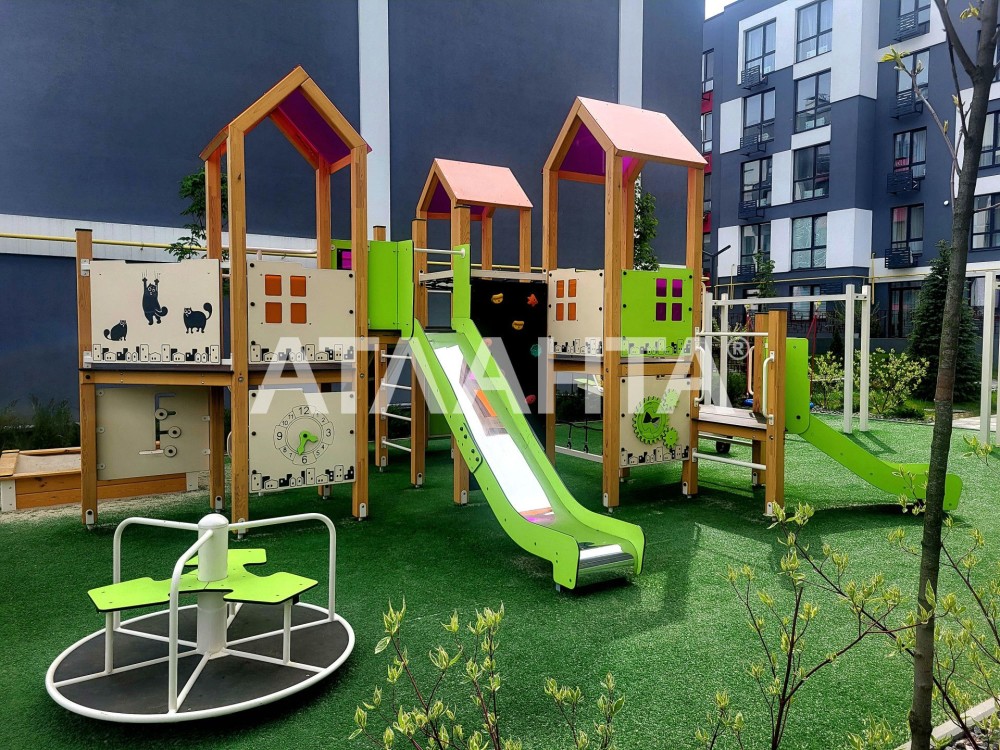 On the territory: a children's playground, guest parking, THRASH! supermarket, cafe. Nearby the residential complex there is a kindergarten and school, lake, public transport stop - 400 m away.