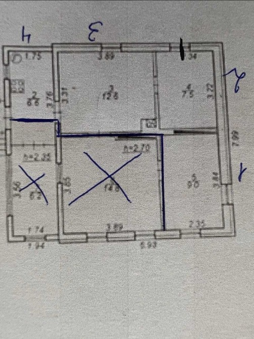 Коридор 7,5 м2 і дві кімнати 9 м2 і 12,8 м2
