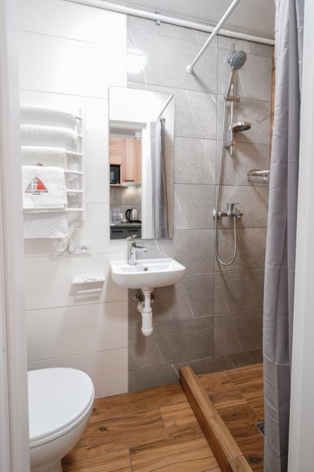 У кожному апарті виконан сучасний новий ремонт та вони обладнані всіма необхідними меблями та технікою, Дуже важливо що кожна з трьох квартир є цілком автономною та має окремий санвузол та вхід.