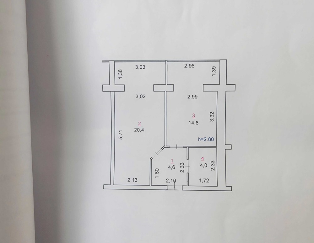 Однокімнатна квартира на четвертому поверсі, не кутова, загальна площа 43,6 житлова 20,4 кухня 14,6.