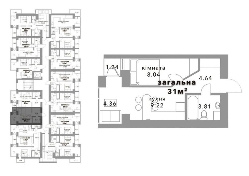 • Загальна площа 31 м2