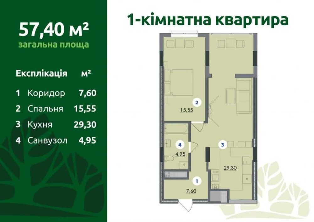 • Загальна площа 57 м2