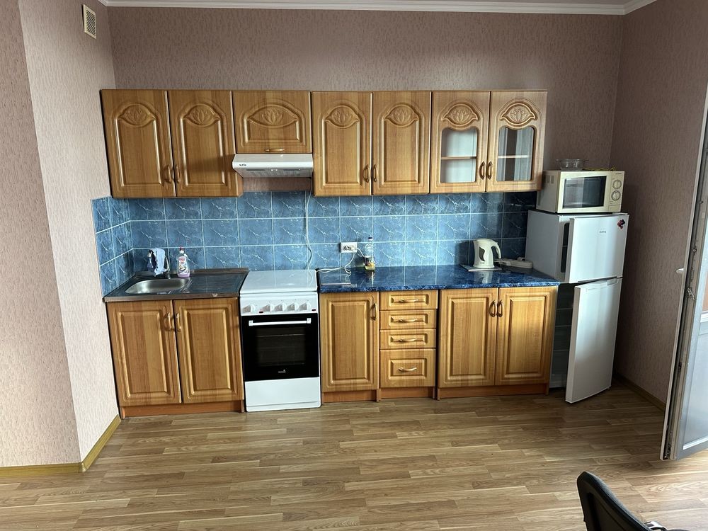 Святошинский район, Нивки, проспект Берестейський ( по старому Перемоги ), N71- а, розташована на 15/16 поверсі цегляного будинку , однокімнатна, 47/19/12м2 - студія, меблі, холодильник, пральна машинка , СВЧ, санвузол сумісний, електробойлер, кладовка, засклений балкон, вікна у двір, не кутова, дуже тепла, лічильники на все ( і на опалення теж), консьєрж, метро Нивки - 5 хвилин, 16000 грн/мес. Рієлтор. Не співпрацюю
