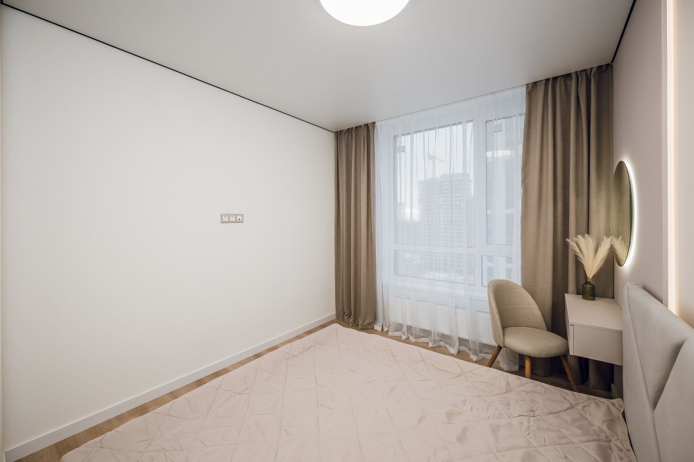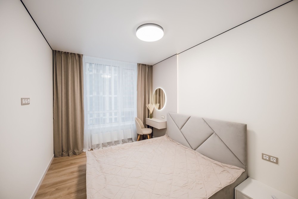Ліжко з підйомним механізмом під матрац 180х200см, великий розкладний диван (спальне місце шириною 160х200см), в якому обидві секції розкладаються окремо (трансформується у кутовий диван або прямий за потреби). Світло не відключають, на випадок відключення є генератор від забудовника.