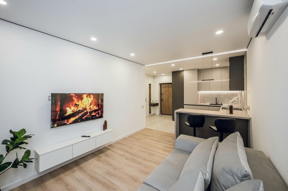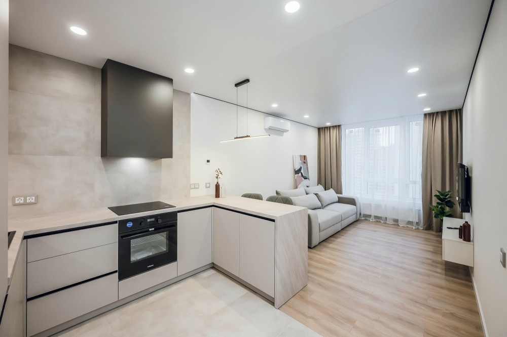Функціонально продуманий високоякісний ремонт по дизайн-проекту в світлих сіро-бежевих тонах, якісна електрика та сантехніка, душова система з термостатом, тепла підлога на кухні та в санвузлі, всі меблі вбудовані на замовлення з фурнітурою Blum. Можливість підключення Ecoflow. Вбудована техніка: