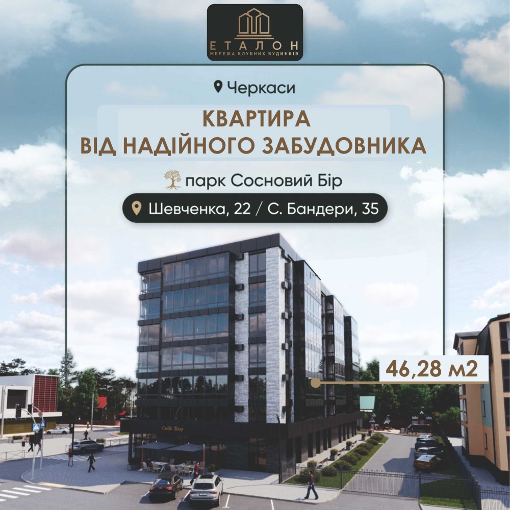 Продається квартира в КБ Еталон в Черкасах по бульв. Шевченка/Степана Бандери площею 46,28 м² має: