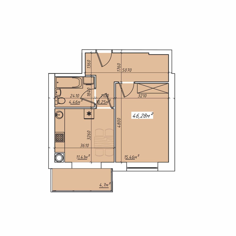 • Общая площадь 46.28 м2
