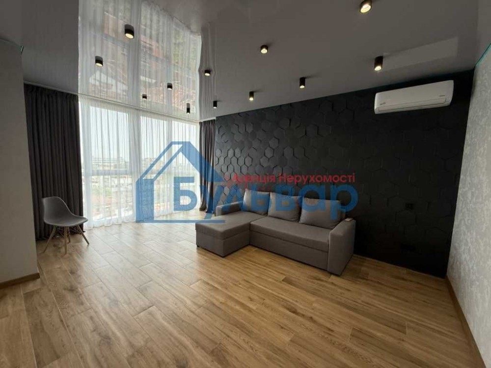 У квартирі виконано дизайнерський ремонт із використанням якісних матеріалів. З вікон відкривається панорамний вид на місто.