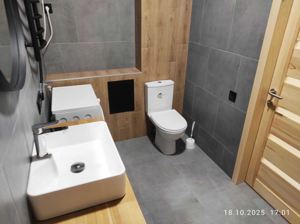 - великий санвузол 5 кв.м, обладнаний бойлером на 80 л, пральною машиною та повноцінною ванною;