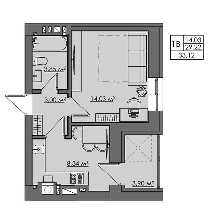 • Загальна площа 33.12 м2